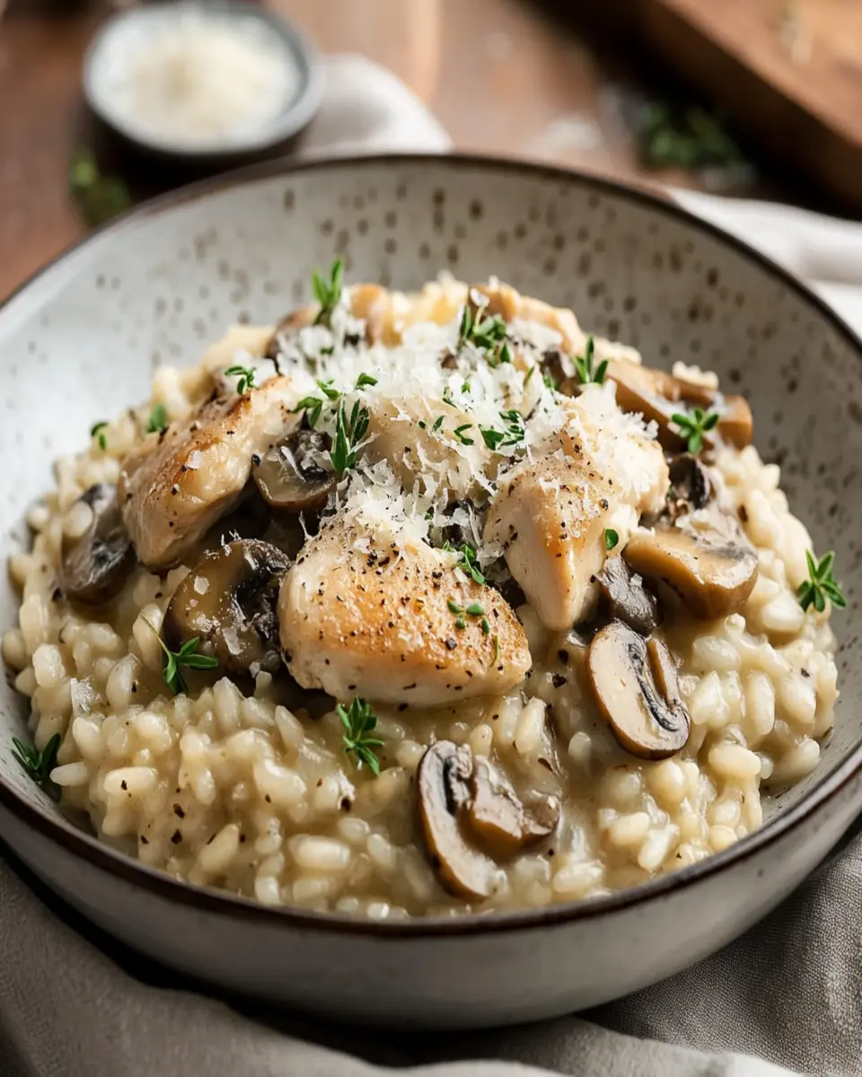 A creamy and delicious Chicken and Mushroom Risotto that is perfect for a comforting dinner.