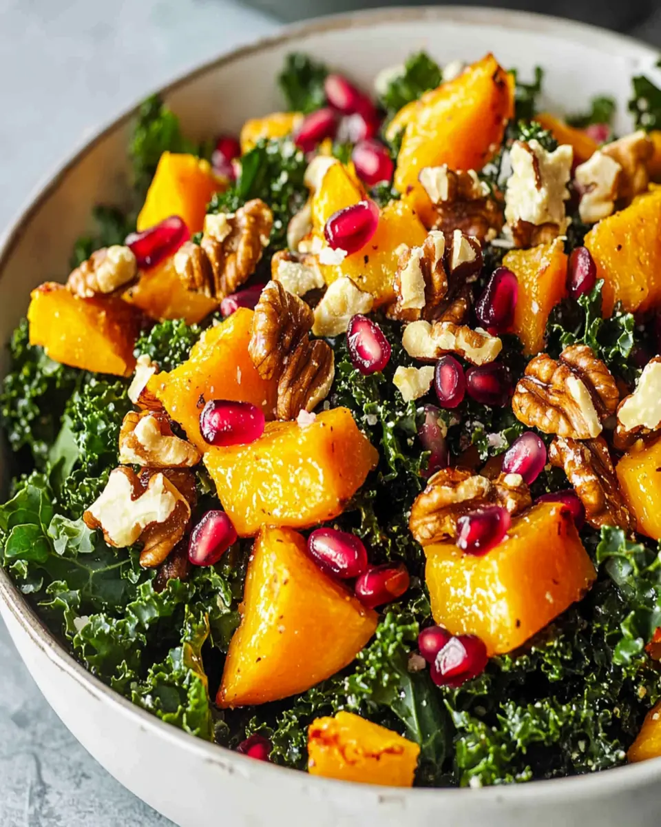 Roasted butternut squash brings a sweet, nutty flavor to the salad. Its tender, caramelized pieces not only elevate the dish’s taste but also contribute warmth and color, embodying the essence of fall.