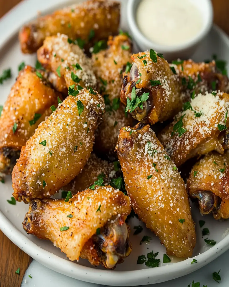 Delicious garlic parmesan chicken wings that are crispy on the outside and flavorful on the inside.