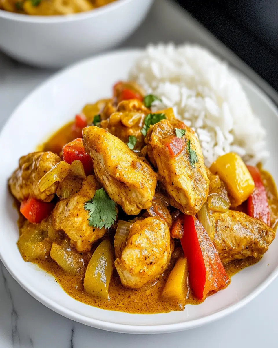 To simplify your cooking process, consider making this a one-pot meal by adding rice directly into the pot with the chicken and sauce. Just ensure to add enough liquid (like more chicken broth or coconut milk) to cook the rice perfectly along with the chicken, creating a comforting, all-in-one dish.
