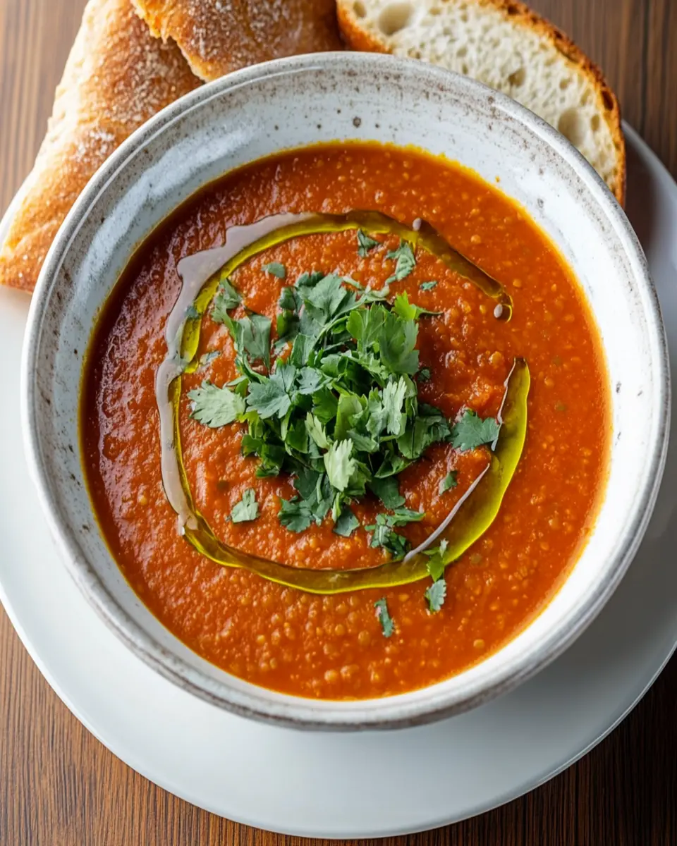 A hearty and flavorful soup made with tomatoes and red lentils, perfect for a comforting meal.