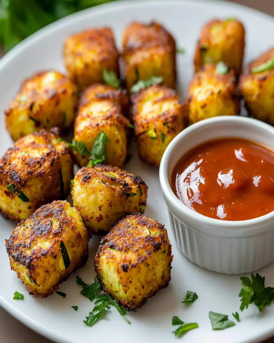 For families with kids, make zucchini tots even more appealing by arranging them in fun shapes or serving them with a side of colorful veggies. This can make healthy eating more exciting for little ones, encouraging them to enjoy their vegetables in a fun and interactive way.